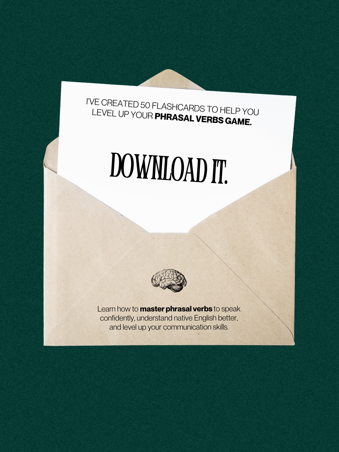 These 50 phrasal verb flashcards were created to make learning English fun, simple, and memorable. Each card gives you a useful phrasal verb, an easy explanation, and an example you can actually use in real life, perfect for leveling up your English anytime, anywhere.